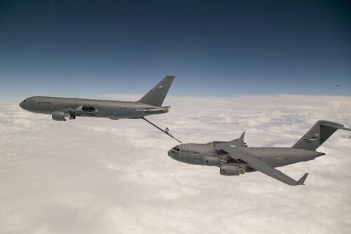 A presença global dos Estados Unidos também se revela na força de reabastecimento em voo. Unindo todas as forças armadas, são, ao todo 394 KC-135, 134 KC/MC-130 (com mais 16 a serem entregues), 48 KC-46 (com mais 123 aserem entregues) e 51 KC-10.