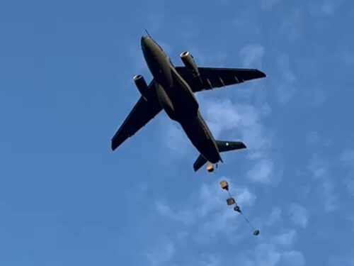 Uma capacidade necessária para tempos de conflitos tem feito a diferença no apoio das forças armadas aos indígenas de comunidades yanomamis, em Roraima. Em um mês, aeronaves da Força Aérea Brasileira realizaram o lançamento de 135 toneladas de materiais na região, incluindo cestas básicas, material para manutenção da pista de pouso, água envasada e combustível.