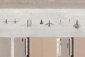 Imagens de satélite da empresa Planet Labs mostram uma base aérea da China na remota província de Xinjiang, onde é possível identificar vários modelos de...