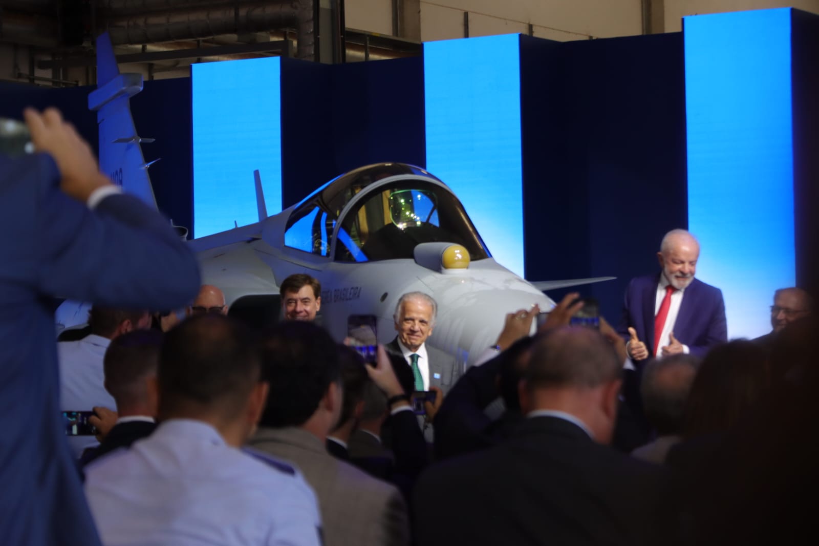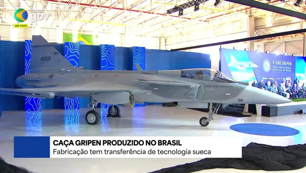 O Brasil escreve hoje mais um capítulo na história da aviação. O primeiro caça supersônico produzido nacionalmente acaba de ser apresentado em Gavião Peixoto (SP), onde funcionam instalações da Embraer com a Saab. A solenidade conta com a presença do presidente Lula . A aeronave, com matrícula FAB 4109, acaba de ser apresentada.
