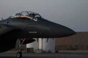 A United States Air Force deslocou caças F-15E Strike Eagle do 494th Expeditionary Fighter Squadron, baseado em Lakenheath, no Reino Unido, para a base aérea...
