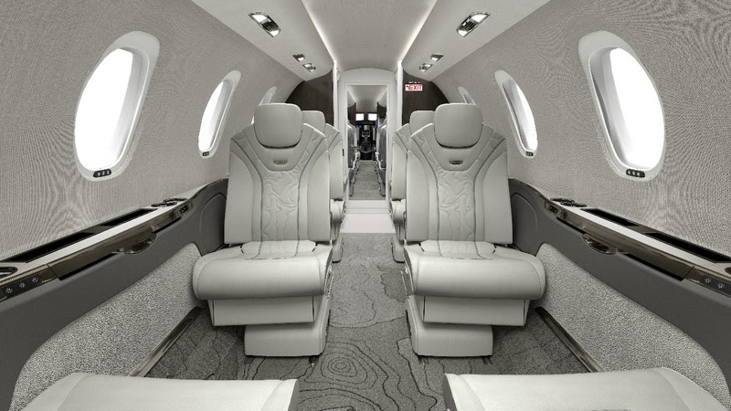 A aeronave tem uma configuração padrão de assentos para nove passageiros e terá capacidade máxima para 12 passageiros. Os assentos da cabine principal terão um controle elétrico para girar e os alinhar em sua base. Os opcionais, acolchoamento do assento, apoios para os pés e o suporte para a lombar, controlado eletricamente, facilitam o relaxamento, enquanto os assentos laterais apresentam encostos dobráveis para fornecer espaço de armazenamento acessível durante o voo.