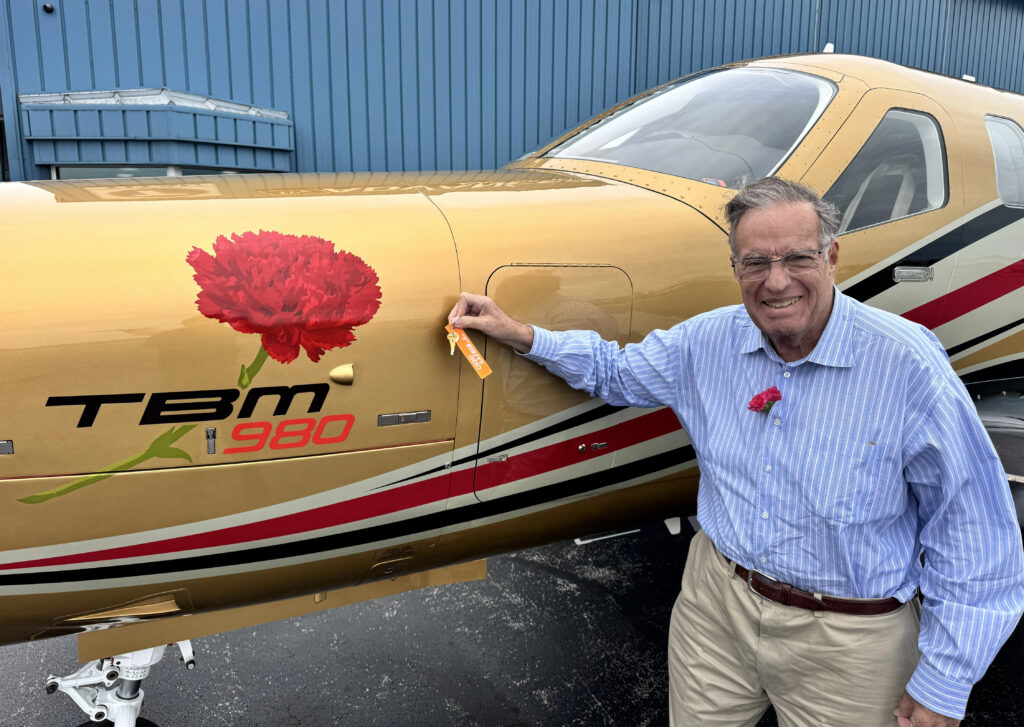 Reconhecido pelo cravo vermelho que usa em homenagem aos seus pacientes, o Dr. Fries mais uma vez selecionou um esquema de pintura distinto para sua aeronave mais recente, projetado por Craig Barnett, CEO da Scheme Designers. O motivo de cravo é destaque no nariz da aeronave: um emblema que se tornou intimamente associado às aeronaves TBM do Dr. Fries e à dedicação à sua profissão.