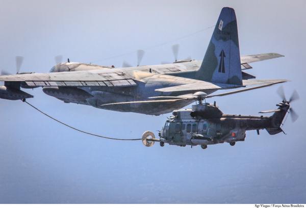 Agora a FAB realiza reabastecimento em voo de helicóptero em cenário operacional. Foto: FAB