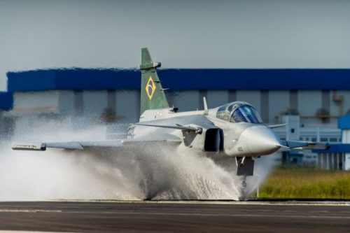 Gripen Brasileiro realiza teste Water Spray no Brasil