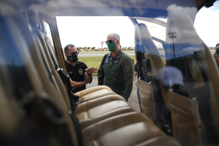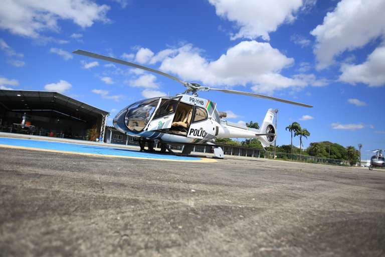 O EC130B4, matrícula PR-YHB, apreendido durante as investigações de crimes envolvendo líderes da facção criminosa PCC, foi recebido hoje pela Ciopaer, Coordenadoria Integrada de Operações Aéreas (Ciopaer) da Polícia Militar do Ceará. As cores vermelhas e pretas originais deram lugar ao branco com cinza, que marcam a identidade visual da Segurança Pública do estado.