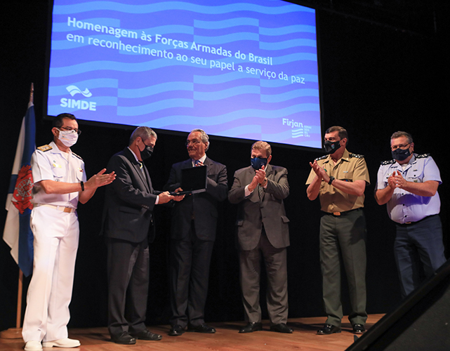 O discurso aconteceu no durante uma homenagem às Forças Armadas promovida, semana passada, pela Federação das Indústrias do Estado do Rio de Janeiro (Firjan) e pelo Sindicato Nacional das Indústrias de Material de Defesa (SIMDE) “em reconhecimento ao seu papel a serviço da paz”. “Esta homenagem tem por objetivo atender a uma antiga demanda dos empresários do Rio de Janeiro. O intuito deste encontro pode ser resumido em duas palavras: reconhecimento e gratidão. Chamo atenção também para uma característica comum entre o Sistema Firjan e as Forças Armadas: o caráter de instituições permanentes”, disse Eduardo Eugenio Gouvêa Vieira, presidente da Firjan.