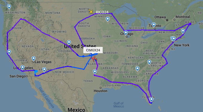 Ao todo, foram voados cerca de 16.000 km. A aeronave decolou de Wichita, no Kansas, e fez uma volta no território continental dos Estados Unidos, incluindo passagens pelas fronteiras com Canadá e México.