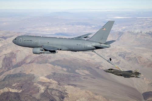 O US Air Force Air Mobility Command realizou entre os dia 5 e 6 de maio uma missão inédita: um jato de reabastecimento em voo KC-46 Pegasus fez um voo de 24 horas de duração. O teste incluiu reabastecer quatro F-35 do United States Marine Corps e receber combustível de outros KC-46.