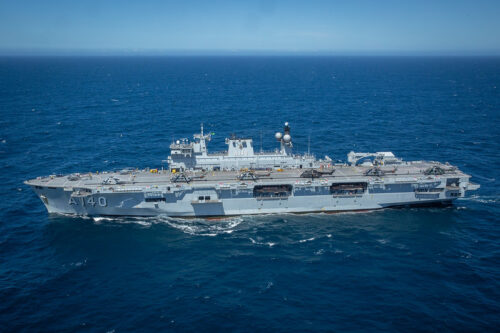 O Navio-Aeródromo Multipropósito (NAM) Atlântico, da Marinha do Brasil, estará entre os dias 7 e 10 de agosto na região da foz do Rio Amazonas para exercer o controle marítimo da área durante a realização da Cúpula da Amazônia, que reunirá chefes de estado em Belém (PA) nos dias 8 e 9 de agosto. A missão também contará com a fragata Defensora, o navio de apoio Iguatemi e os navios-patrulha Bocaina e Guarujá, além de uma aeronave P-95 Bandeirante Patrulha da Força Aérea Brasileira.