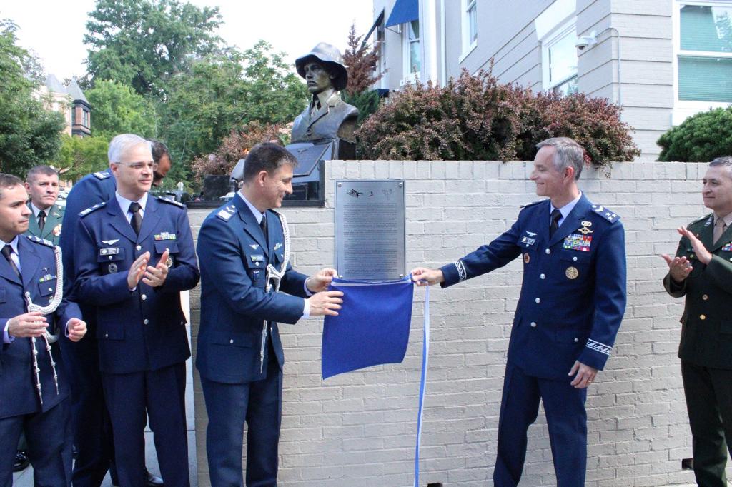 Ainda, no dia 19 de julho, foi descerrada uma placa comemorativa, na área externa da Comissão Aeronáutica Brasileira em Washington, junto ao busto do inventor já instalado no local, contribuindo para a divulgação da sua obra e memória junto aos moradores e turistas que passam pelo local.