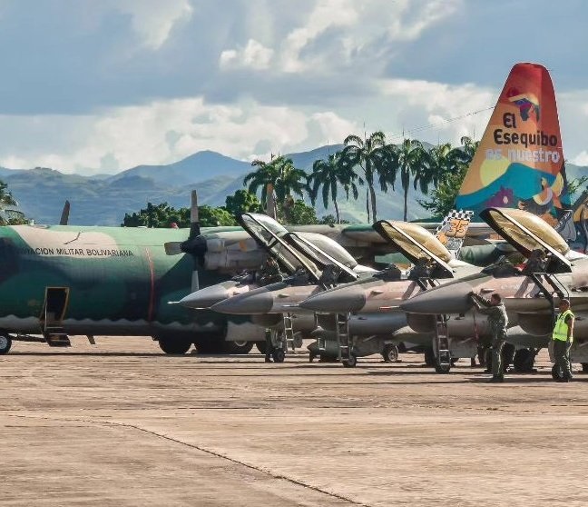 Pelo menos um avião de transporte tático C-130 Hércules e um jato de treinamento avançado e ataque Hongdu JL-8 Karakorum também receberam a pintura, que ressalta as cores do país. No caso do cargueiro, está escrito “O Essequibo é nosso”. Já um navio militar recebeu a mesma marcação visual e os dizeres “Essequibo é nosso. Avançar e vencer”.
