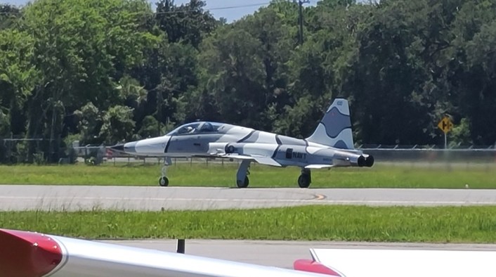 O fotógrafo Jessie Roberts (@mr_roberts_203) flagrou um F-5F Tiger II da US Navy com uma pintura de “tigre siberiano”, claramente inspirada no esquema de cores utilizado em caças russos Flanker.